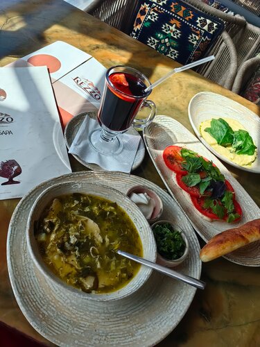 Очень понравился ресторан, приятная обстановка, приветливый персонал, вкусно и красивая подача👌👍. Сегодня у меня день рождение, мне сделали подарок : торт со свечкой и кизиловое варенье 🤗🤗🤗. Спасибо огромное 💕